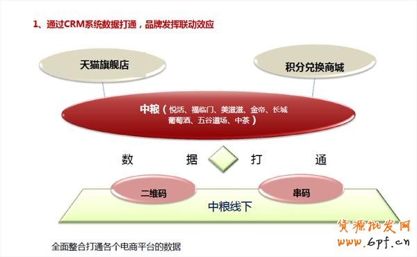 這不是傳說(shuō),這是中糧食品電商總監(jiān)周穎和瑞金麟正在摸索打造的一個(gè)體系,利用積分策略打通各個(gè)平臺(tái)的CRM,無(wú)論是官網(wǎng),還是天貓商城,每個(gè)消費(fèi)者購(gòu)買(mǎi)產(chǎn)品后都會(huì)得到一些積分,掃描二維碼或者串碼獲得,在消費(fèi)者得到這些積分的時(shí)候,客戶信息便積累到中糧的CRM客戶池中,所以,消費(fèi)者無(wú)論在哪里買(mǎi)到的商品,都可以集中統(tǒng)一在一個(gè)平臺(tái)上進(jìn)行管理。