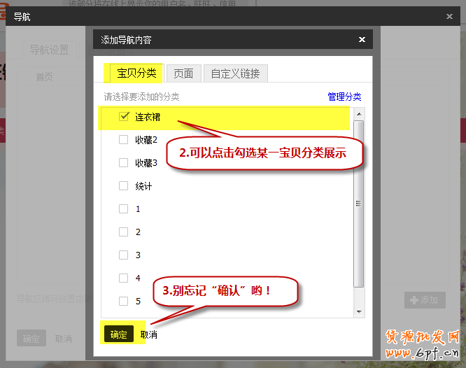 2.添加寶貝分類至導航操作如下: