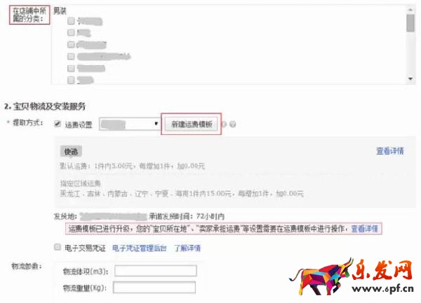 關于寶貝物流及安裝服務,是我們選擇寶貝運費的模板,如果沒有運費模板,可點擊新建運費模板,對運費進行設置。