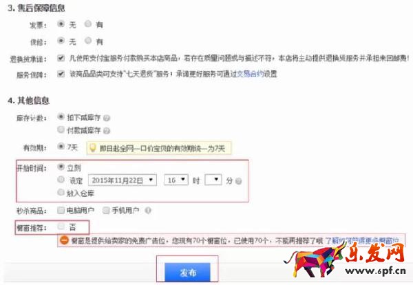 那么以上操作完全后,點擊最下面發布按鈕,寶貝發布就完成了。