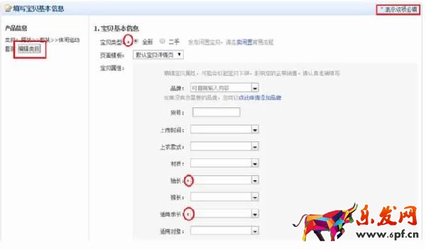 進入寶貝編輯頁面,這里又有個編輯類目,這個編輯類目是對于我們前面的選擇進行修改或是編輯的一個按鈕,如果在前面選擇類目時,沒有選擇仔細,也可以在這里補充。其中“紅心”是必填選項。