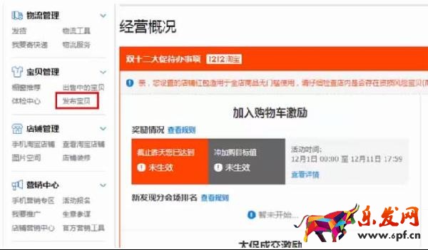 進入后臺管理頁面,我們會看到左側有一個菜單欄,我們找到寶貝管理,點擊發布寶貝