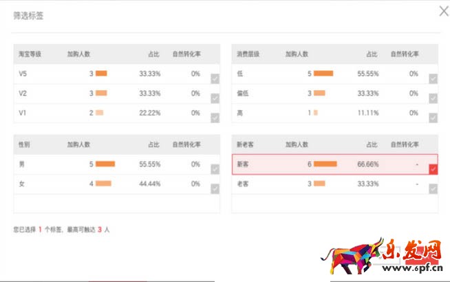 溫馨提示:淘寶登記:指消費(fèi)者在淘寶平臺(tái)登記,并非店鋪內(nèi)vip等級(jí)。新客:指歷史未成交客戶。老客:指歷史有過成交客戶。