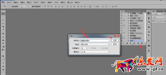 點擊新建動作之后,可以對我們要記錄的動作重新命名,命名完后點擊記錄,那么現(xiàn)在開始,我們每一步的操作都會被記錄下來。