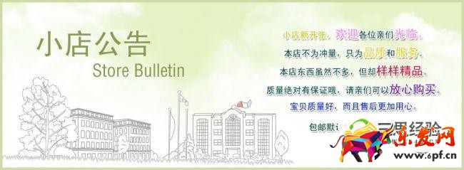 店鋪公告尺寸:320x400.大小不限,格式為jpg、gif格式。